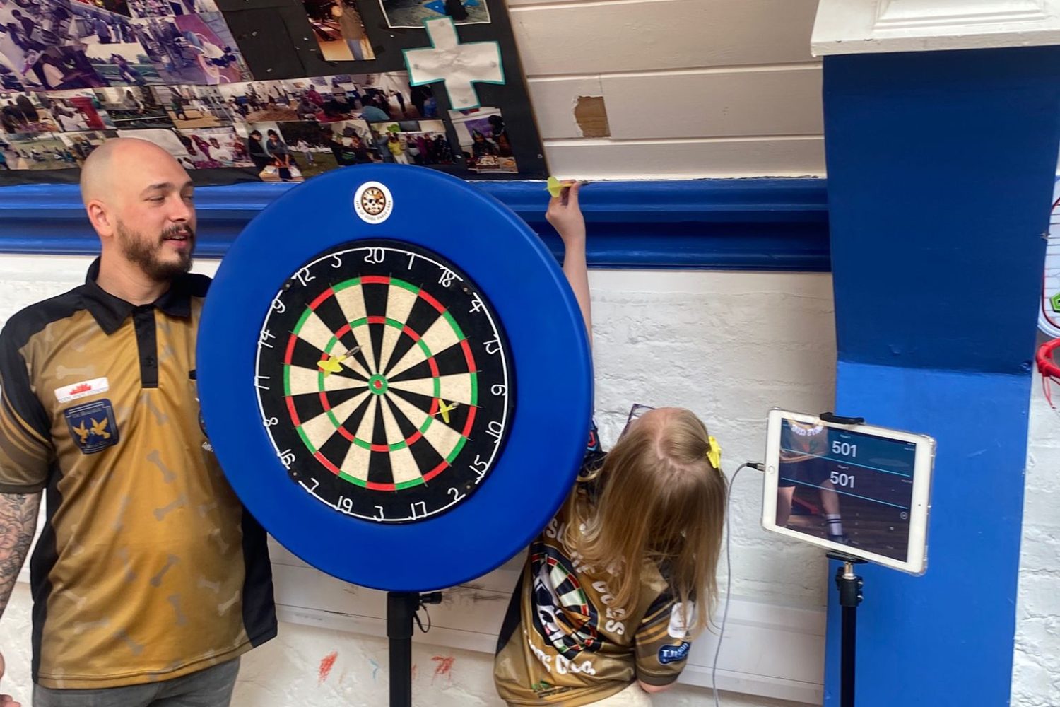 Our friendly coaches/ volunteers help the children engage in the game of darts, helping the children learn the fundamentals of the game.